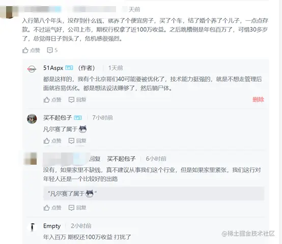 第三位:是给我文章留言评论的程序员:30+ 大数据 有期权年入百万 还是很焦虑