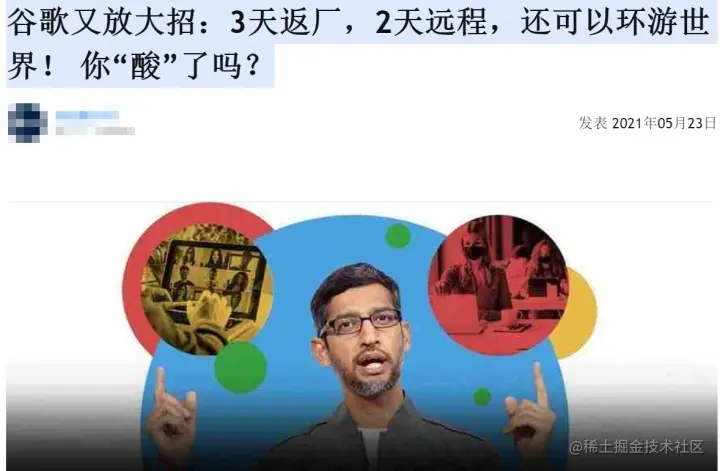 谷歌在做去中心化办工的事情,带着个电脑就可以办工,他们现在也都是去中心化办工模式;