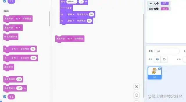 这个模块需要配合其它模块使用,比如前面的模块,我们让它在按下某个键后就发出猫咪声,如图: