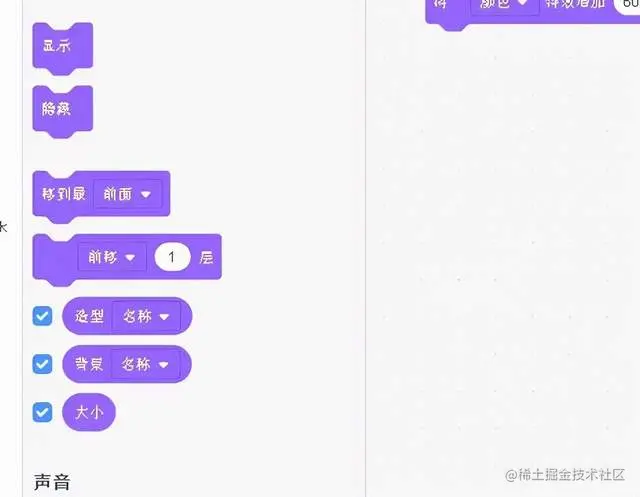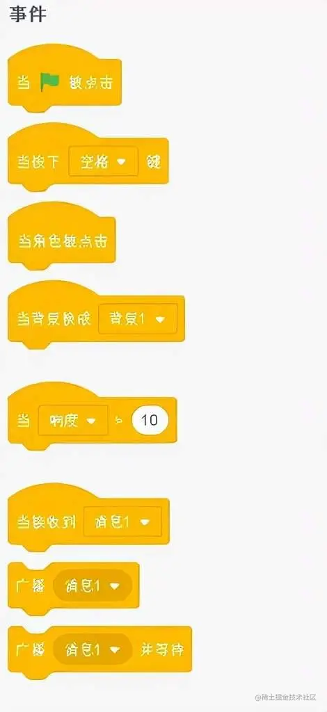我们从上图中可以看出Scratch的界面比较简洁,非常适合少儿编程,所以我们学起来也不会很困难。可以看到Scratch有这些早就编好的代码功能模块供我们使用,如图:
