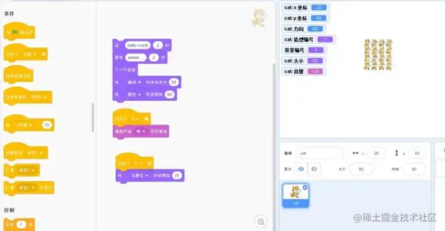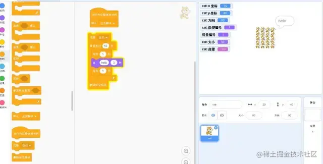 这里我们克隆了这个角色,而且重复执行了十次说Hello并等待3秒的过程,但是控制里面有一些功能并不能单独使用,所以我们需要搭配其它功能模块来使用,下面我们接着来看其它模块。