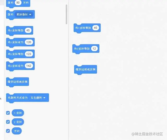 这个板块具有让Scratch中的对象运动起来的功能,如下: