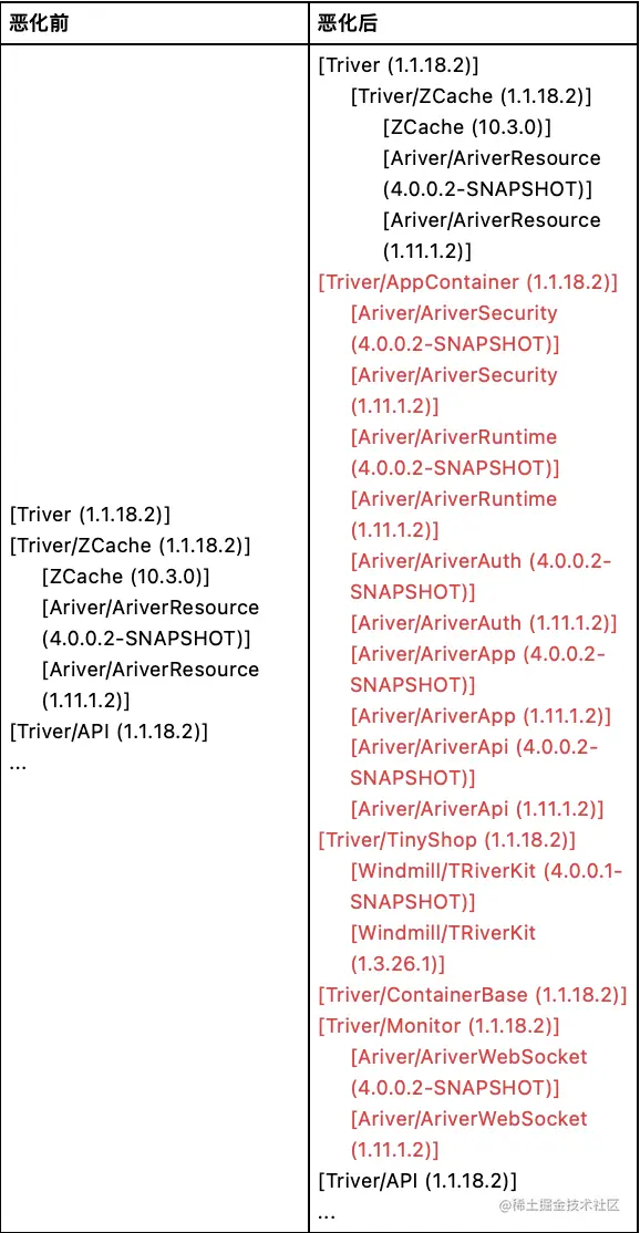 根据遍历过程的日志,恶化前Triver/API 遍历排序是第2,排在Triver/ZCache之后。恶化后Triver/API 遍历排序是第5,排在Triver/AppContainer 、Triver/ZCache、Triver/TinyShop、Triver/Monitor之后。