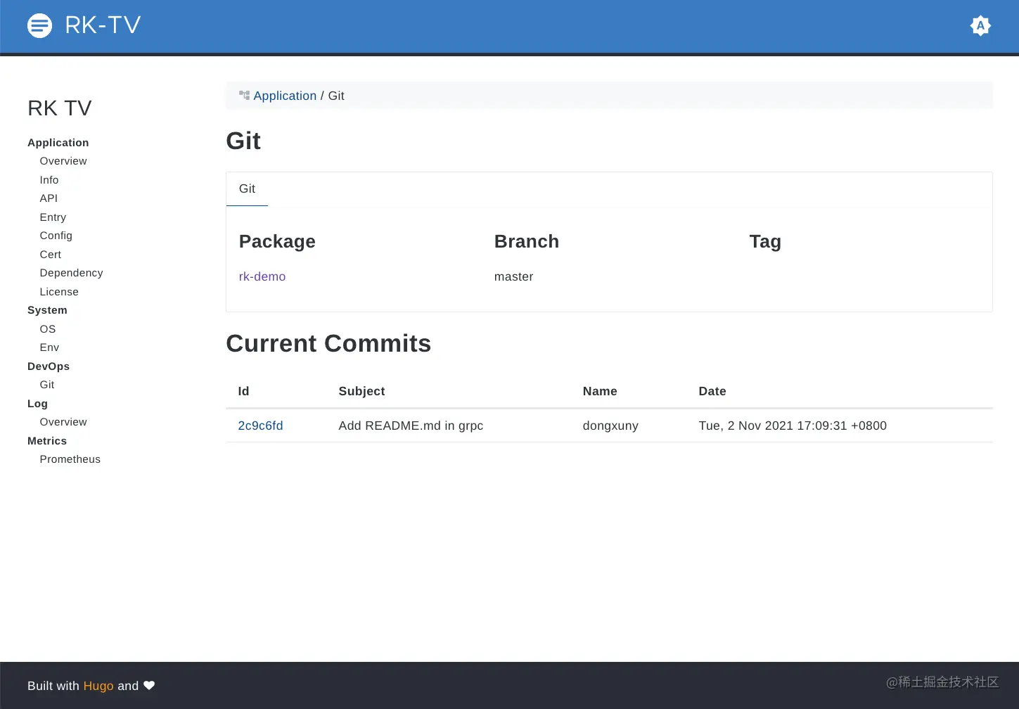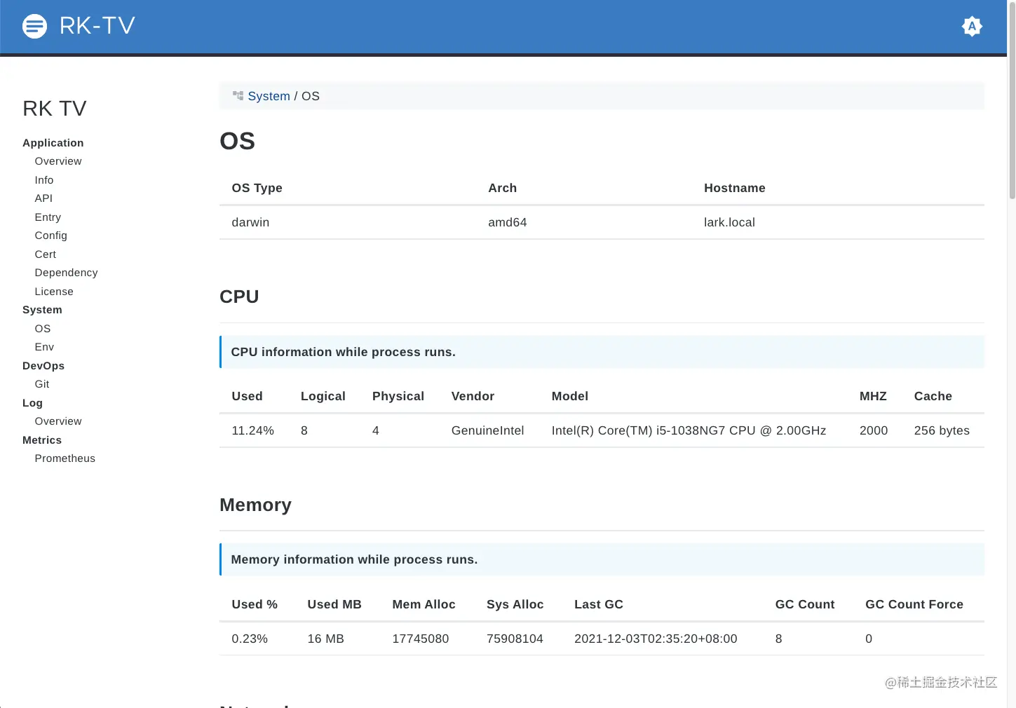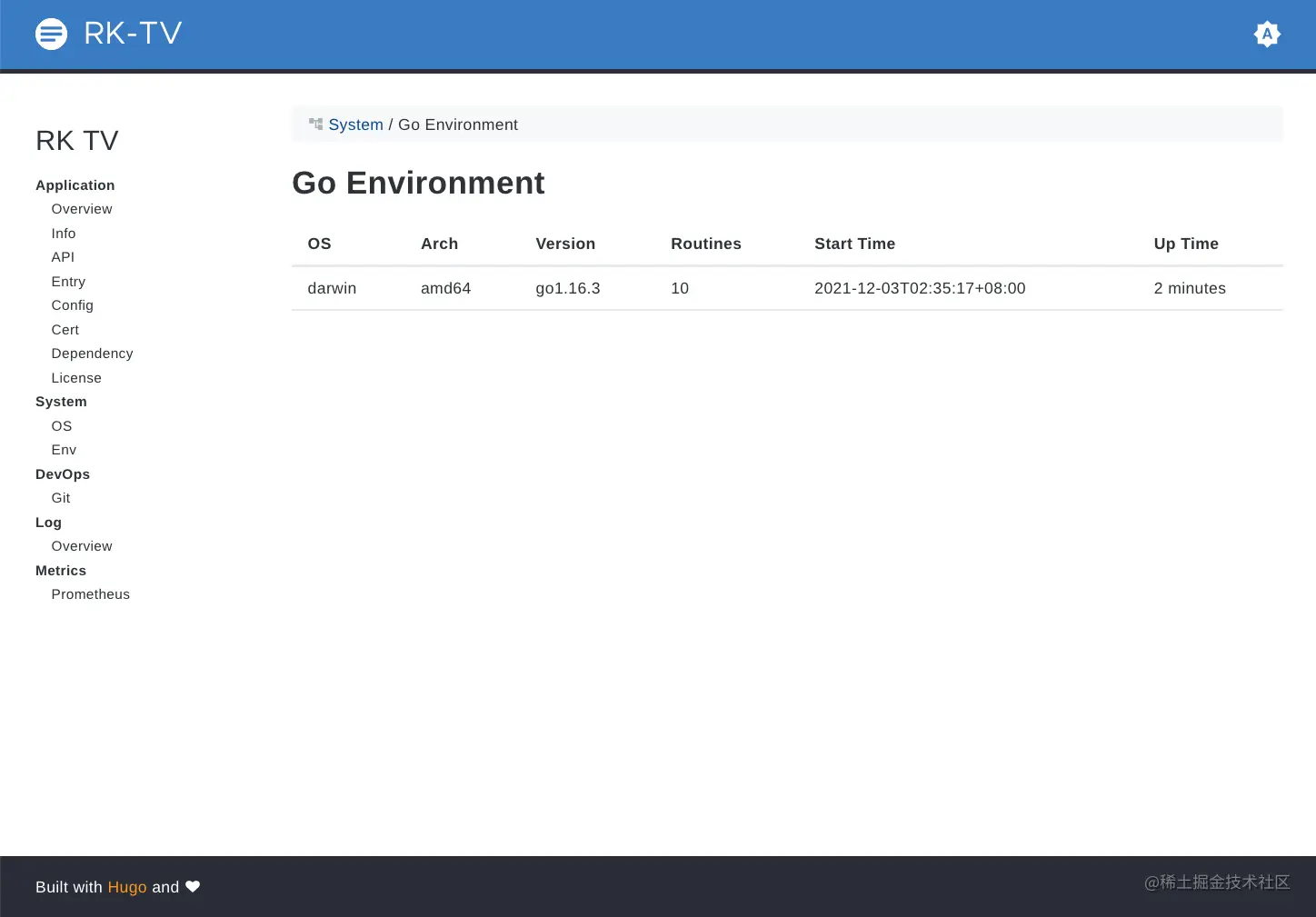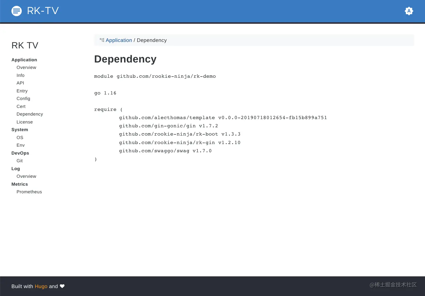 rk-boot 会读取本地 go.mod 文件,并展示在 TV 页面中。