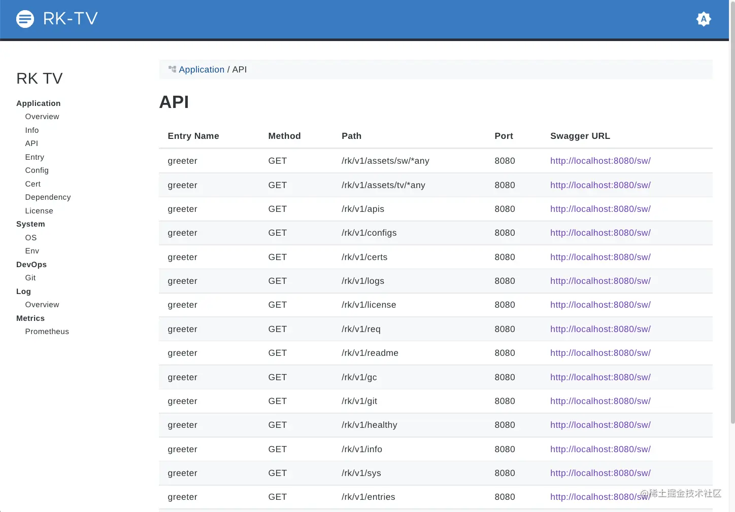 rk-boot 会读取 Gin 内部所有 API 列表。