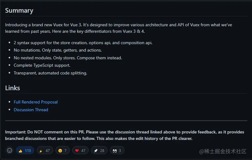 在认识 Pinia 之前,我们先来看 vue 上一个关于 Vuex 5.x 的 RFC :