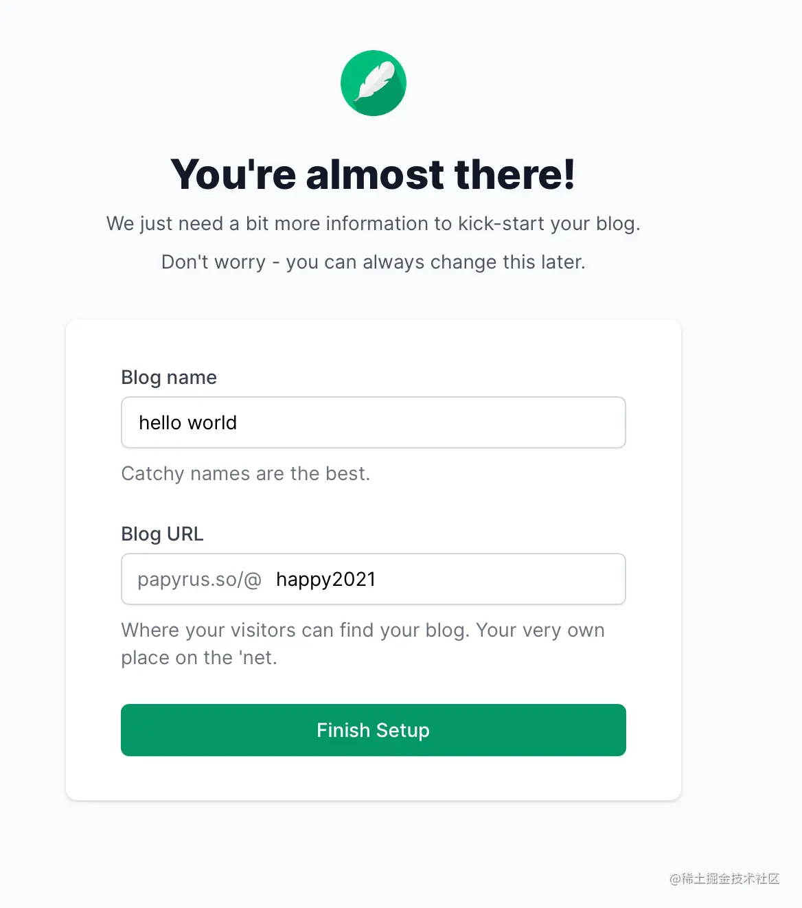 接下来设置你的博客名称和专属用户名