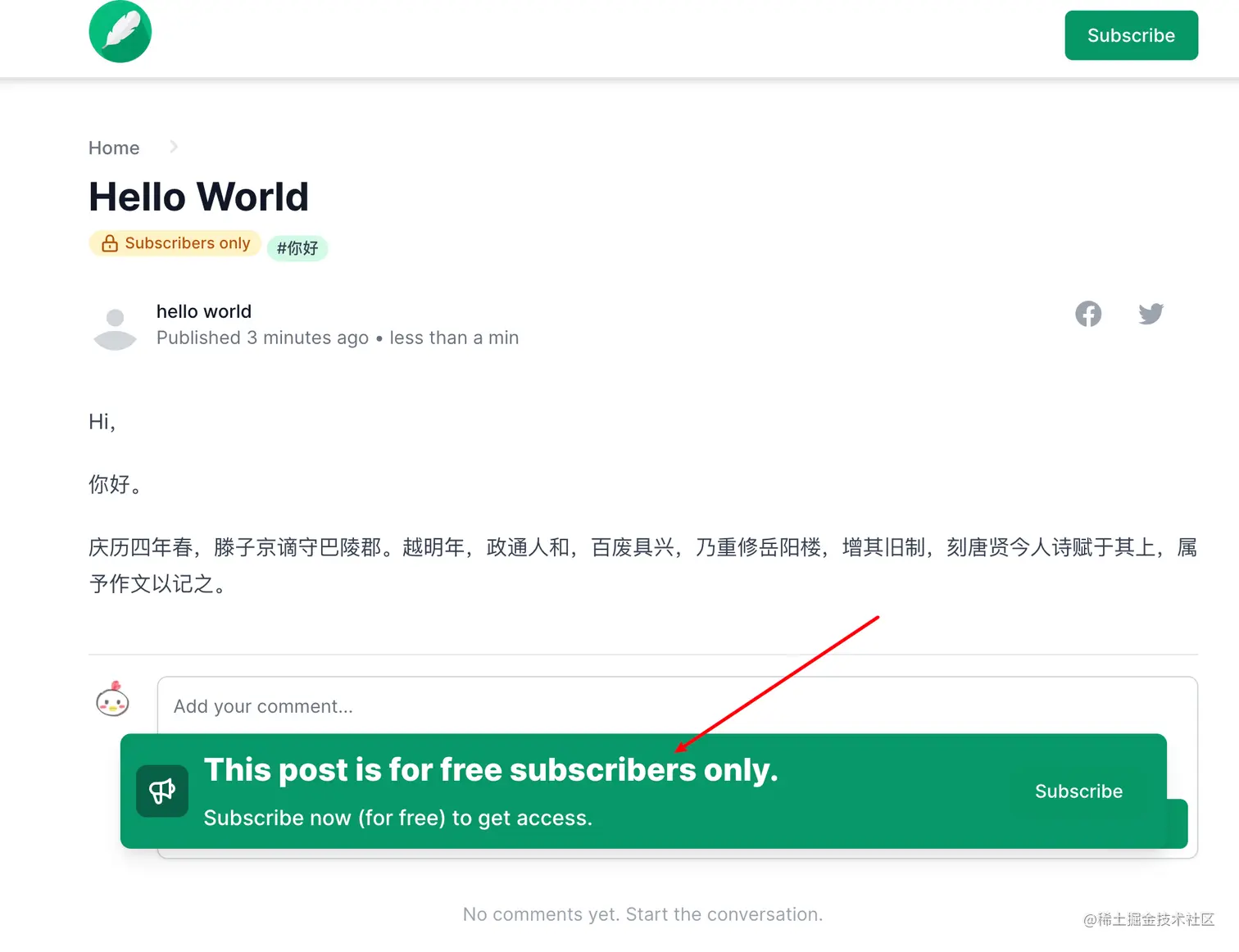 另外你也可以看到,这篇文章有一个 Subscriber only 的标签,意味着只有订阅者可见。