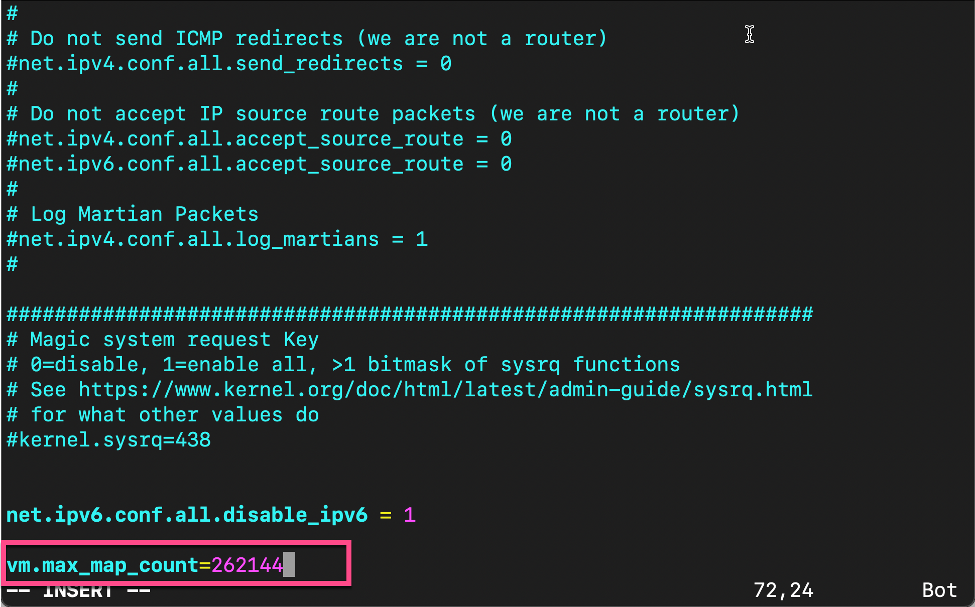 vagrant@ubuntuvm1:~$ sudo sysctl -a | grep max_map_count