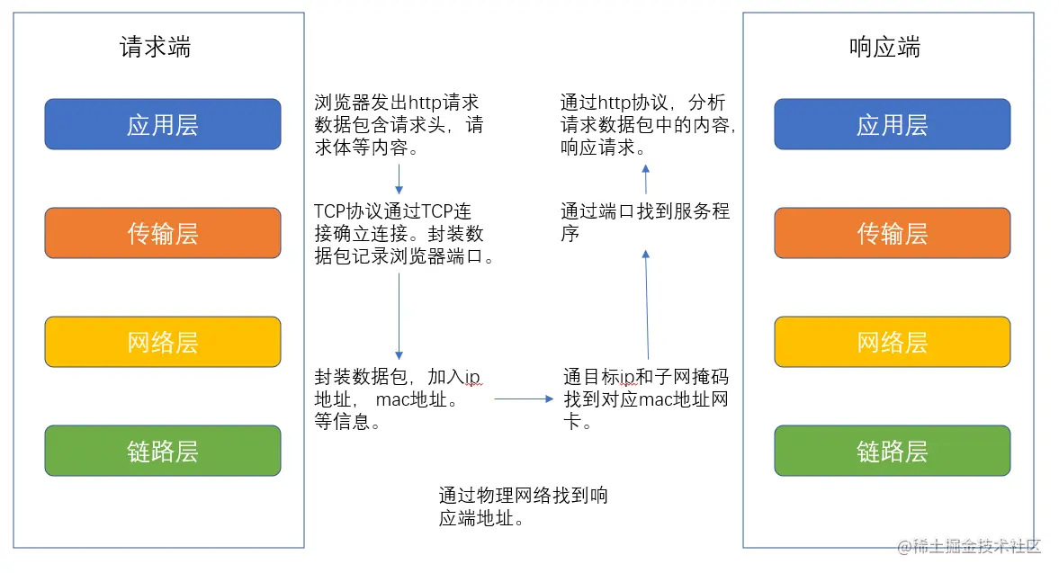 接下来我们以一个http请求为例,阐述一下四层网络模型的运行情况。