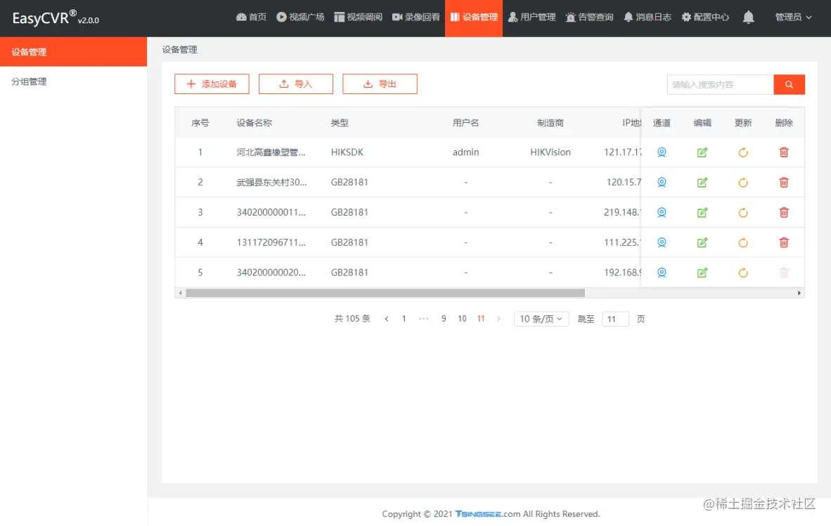 EasyCVR作为一款功能完善的视频结构化智能分析平台,支持多种协议的视频流输出,除了可以接入RTSP、GB28181外,还通过HIKSDK、Ehome等私有协议完成与设备的对接和视频流的传输。