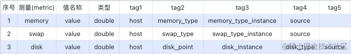 一方面,TDengine 要求其入库的数据具有严格的模式定义。另一方面,TDengine 的数据模型相对于 OpenTSDB 来说又更加丰富,多值模型能够兼容全部的单值模型的建立需求。 现在让我们假设一个运维监控场景,我们使用了collectd收集设备的基础度量(metrics),包含了 memory、swap和disk 等几个度量,其在 OpenTSDB 中的模式如下: