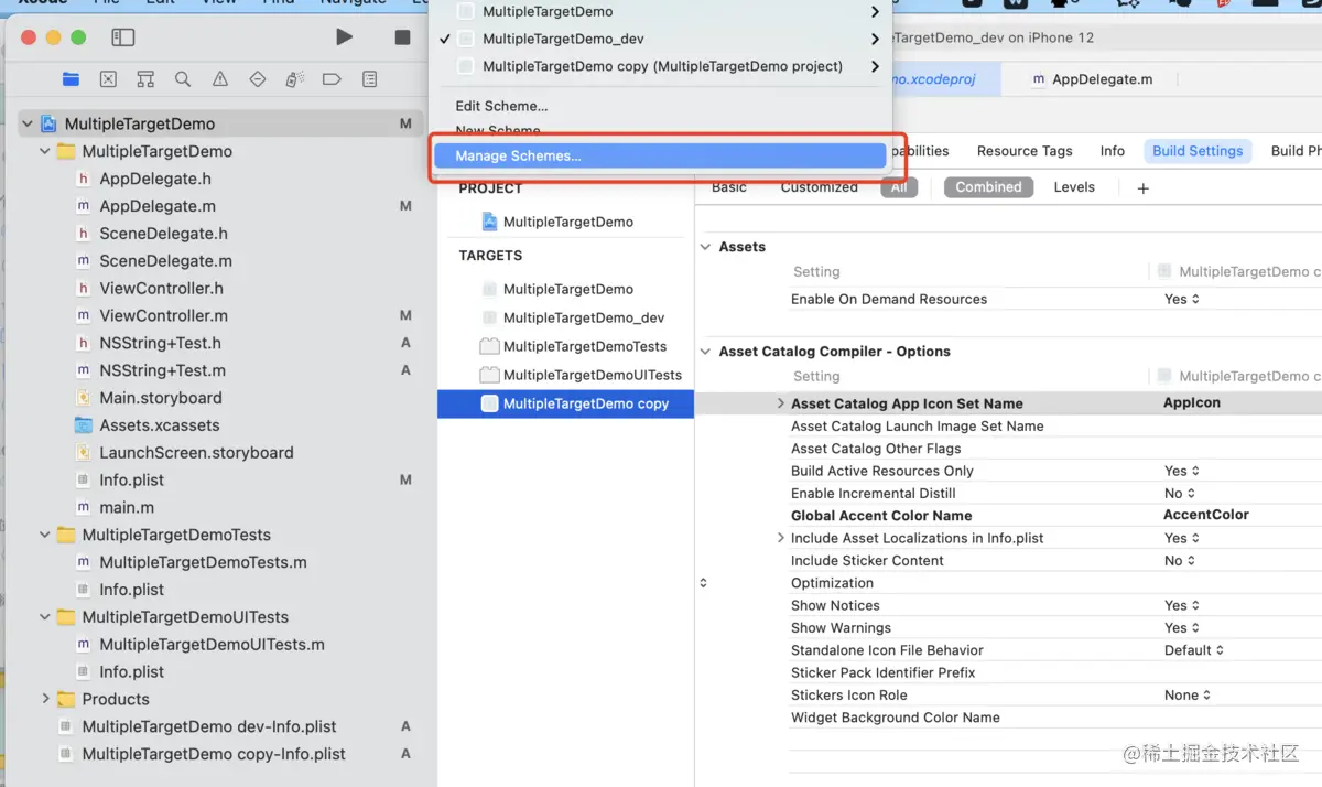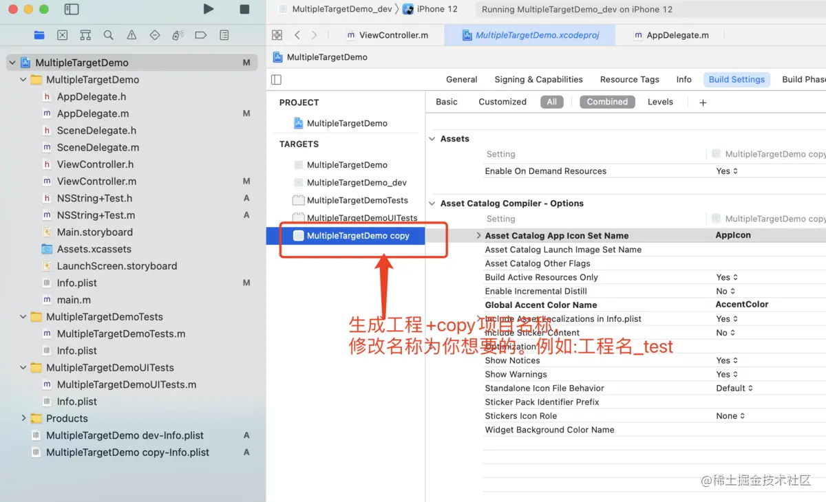 1、创建Target:选中当前的工程,选中TARGETS,右键需要多环境管理的target,点击Duplicate,生成当前target的拷贝。在项目中的plist,Scheme也都相应的生成一份拷贝