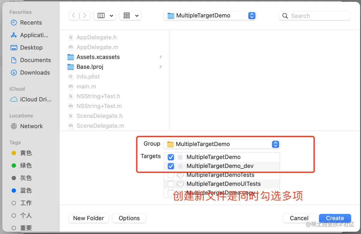 8、添加新文件:添加新文件,同时勾选多个target项,否则无法同步代码