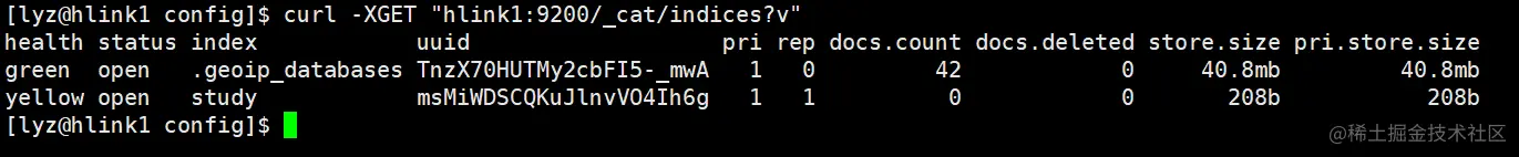 curl -XGET "hlink1:9200/_cat/indices?v"