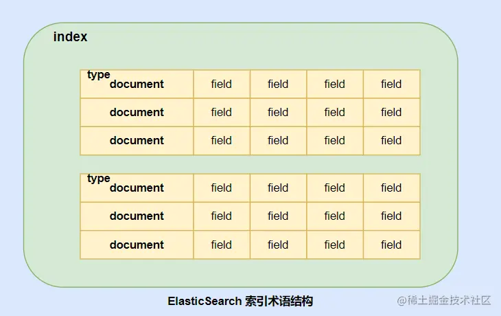 文档是 Lucene 索引和搜索的 原子单位,它是包含了一个或多个域的容器,基于 Json 格式进行表示。文档有一个或多个域组成,每个域拥有一个名字及一个或多个值,有多个值的域通常被称为 多值域,每个文档可以存储不同的域集,但同一类型下的文档至应该有某种程度上的相似之处。相当于 mysql 表中的 row 。