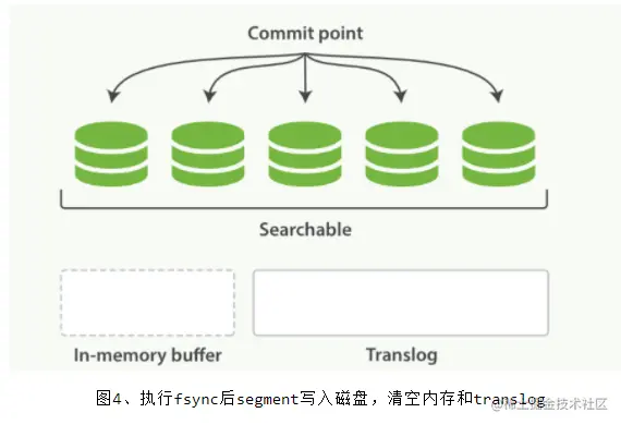 每隔 30 分钟或者 translog 文件变得很大,则执行一次 fsync 操作。此时所有在文件系统缓存中的 segment 将被写入磁盘,而 translog 将被删除(此后会生成新的 translog)