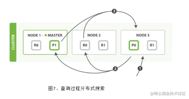 查询的过程大体上分为查询(query)和取回(fetch)两个阶段。这个节点的任务是广播查询请求到所有相关分片,并将它们的响应整合成全局排序后的结果集合,这个结果集合会返回给客户端。