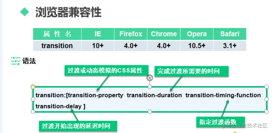 语法:【transition:{transition-property transition-durationg transition-timing-function