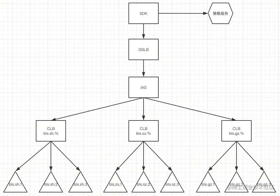 2)同一个城市不同的资源池设置不同的 set,那么IAS如何接入同一个城市不同 set 呢? 北极星本来有[通配组功能],但是 IAS 不支持 set 通配符功能实际上,我们推动 IAS 实现了通配组匹配,例如使用 bls.sh.% 可以匹配 bls.sh.1 , bls.sh.2 , bls.sh.3 。注意, IAS 通配符和北极星的不一样,北极星使用的是***, IAS 在上线的时候发现有用户使用*做单独匹配,所以使用%来表示通配符。