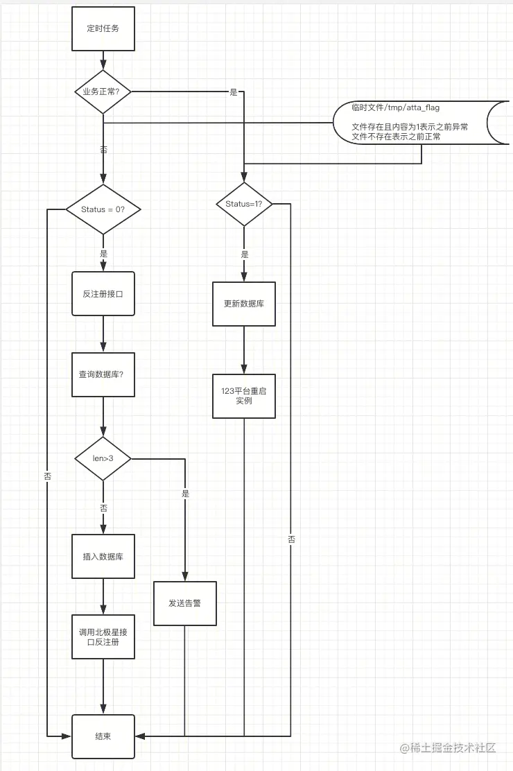 如图所示,处理流程是两条线,告警触发和告警恢复,当业务异常的时候,首先判断当前异常节点的数量,保证不会大范围的摘掉节点。然后在北极星摘除节点。当业务恢复的时候,直接重启节点。