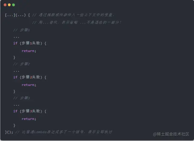这个其实也适用于其他用do while的语言,不止C++。当然关于这个用法在C++11以后,很多人提出,用立即执行的lambda会更好,表现力会更强一些: