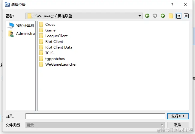 如下图所示,自行找到英雄联盟的安装位置,如果是用wegame下载的,建议直接找wegame目录。