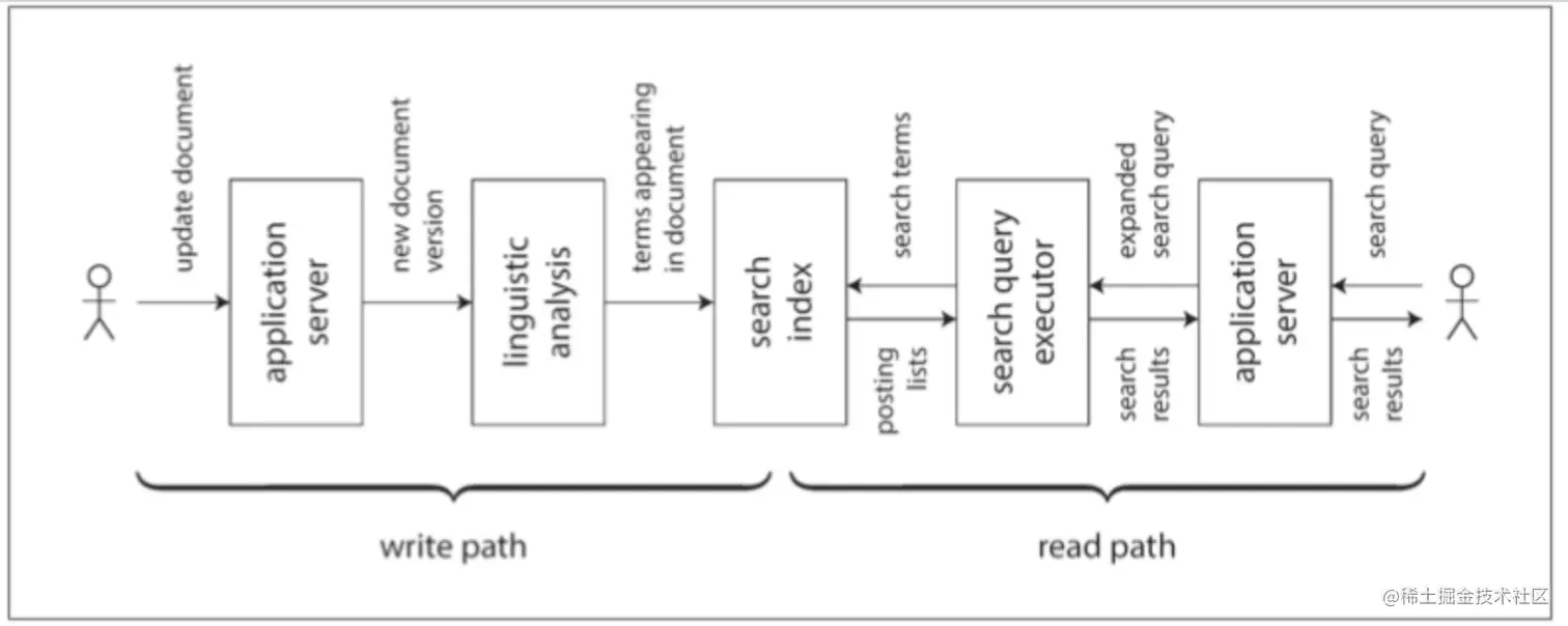 全文搜索索引是一个很好的例子:写路径更新索引,读路径在索引中搜索关键字。
