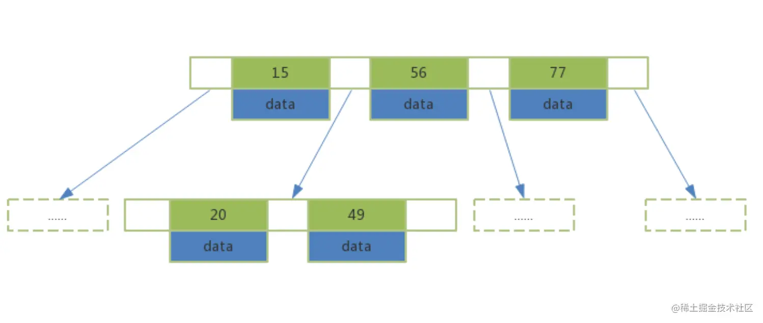 - 每个节点可以存放多个索引值和对应的 data 数据(按照从左到右升序排列)