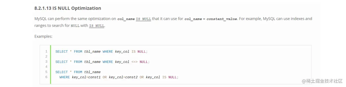 - 可以用 explain 命令分析,查询结果中的 key 列值是否为 null,为 null 的则没有使用索引