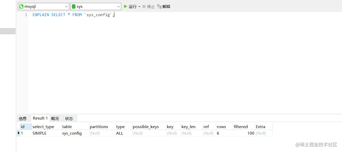 SQL 执行了全表扫描,explain 分析后可以看到 type 属性值为 all