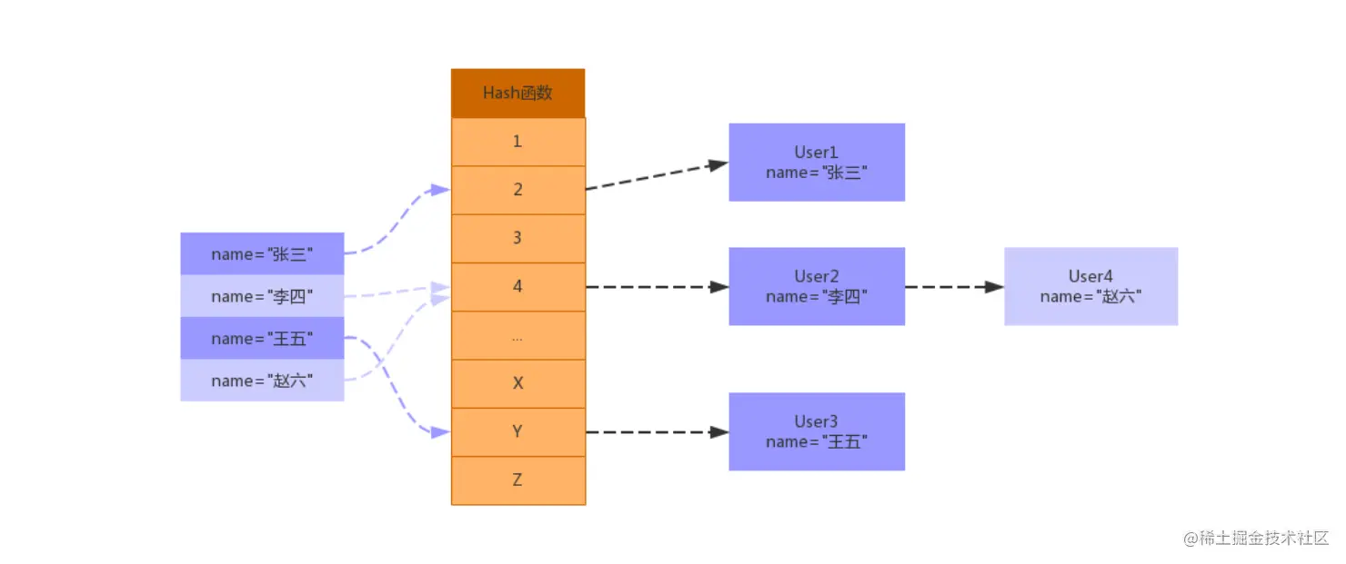Hash 底层是由 Hash 表实现的,键值对<key,value>存储数据的结构。非常适合根据 key 查找 value 的值,也就是说等值查询或者说单个 key 查询。