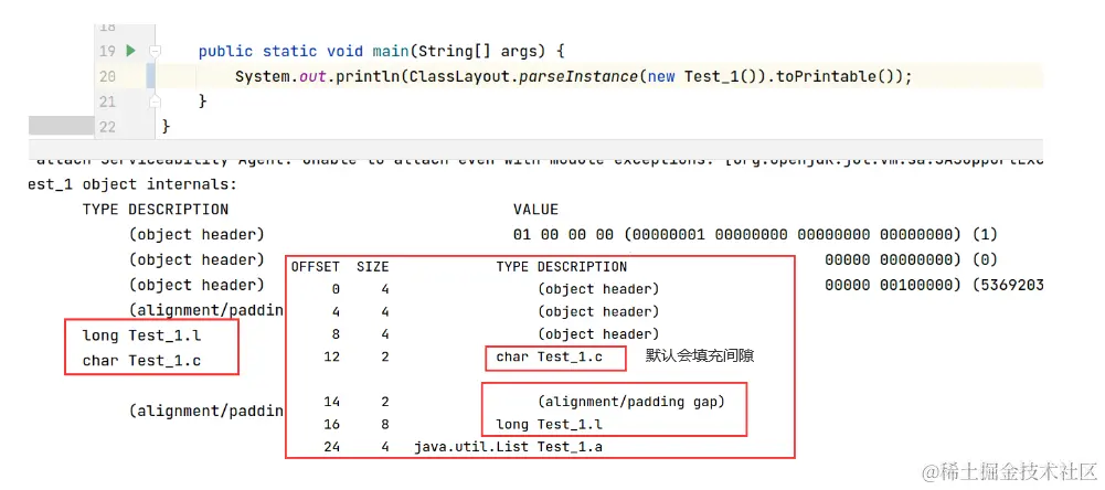 不管是否开启指针压缩,这块区域都要吃掉8B内存。那在关闭指针压缩的情况下,这块区域就浪费掉了4B内存。能忍?可忍可不忍。hotspot给了你选择权。通过修改-XX:+/-CompactFields的值,可以选择让hotspot是否往这块间隙中织入属性。默认是开启的。可以通过如下代码测试