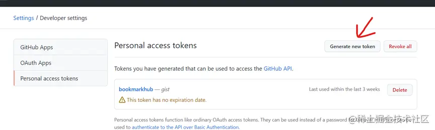 登录之后,选择“设置-开发者设置-生成新token”,这里记得勾选Gist,然后点击“生成token”即可。