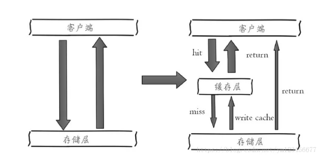 下图左侧为客户端直接调用存储层的架构,右侧为比较典型的缓存层+存储层架构。