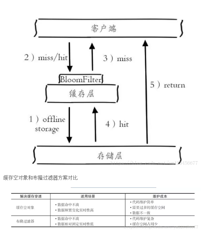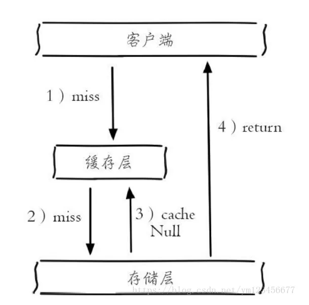 ①缓存空对象:如图下所示,当第2步存储层不命中后,仍然将空对象保留到缓存层中,之后再访问这个数据将会从缓存中获取,这样就保护了后端数据源。