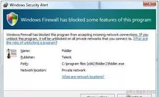 重启Fiddler后,Windows防火墙会请求是否允许传入链接连接到Fiddler。