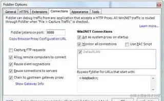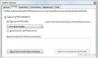 有了上面的设置,Fiddler可以监控HTTP的通信数据和流量,但是HTTPS不行。如果想让Fiddler捕捉HTTPS通信信息,需要再次更改Fiddler的配置。