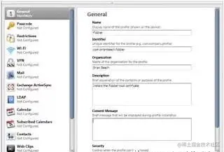 下载并安装后,启动iPhone配置实用程序。选择配置文件,然后单击新建以配置常规选项,如下所示。