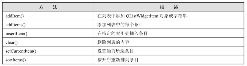 QListWidget是一个升级版本的QListView,它已经建立了一个数据存储模(QListWidgetltem),直接调用addltem()函数,就可以添加条目(ltem)。