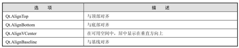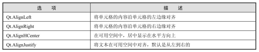 如果要设置水平和垂直对齐方式,比如在表格空间内上、下、左、右居中对齐,那么只要使用Qt.AlignHCenter和Qt.AlignVCenter 即可。