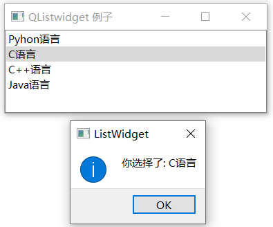 QMessageBox.information(self, "ListWidget", "你选择了: "+item.text())