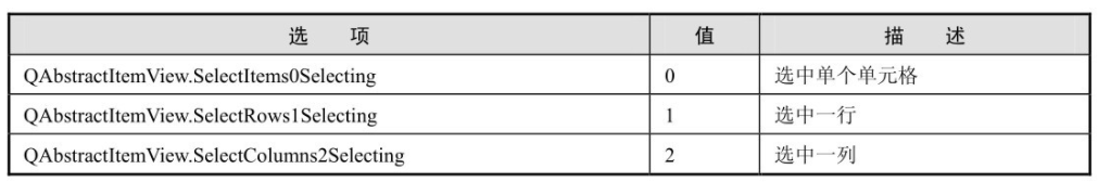 QTableView控件可以绑定一个模型数据用来更新控件上的内容,可用的模式如下表所示: