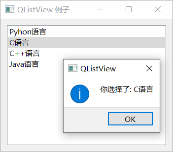 QMessageBox.information(self, "QListView", "你选择了: "+ self.qList[qModelIndex.row()])