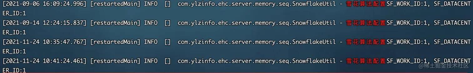 系统初始化的时候会初始化话雪花类,到每台服务查看日志配置之后发现每台都是1,之后同事让运维人员配置相关SF_WORK_ID,每台Linux的SF_WORK_ID都不同