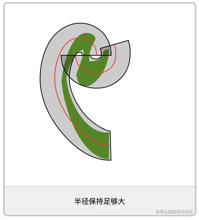 如果遮罩路径的曲线半径变得小于笔划宽度,则会出现类似问题,当动画穿过那条曲线时,可能会发生中间状态看起来严重弯曲的情况