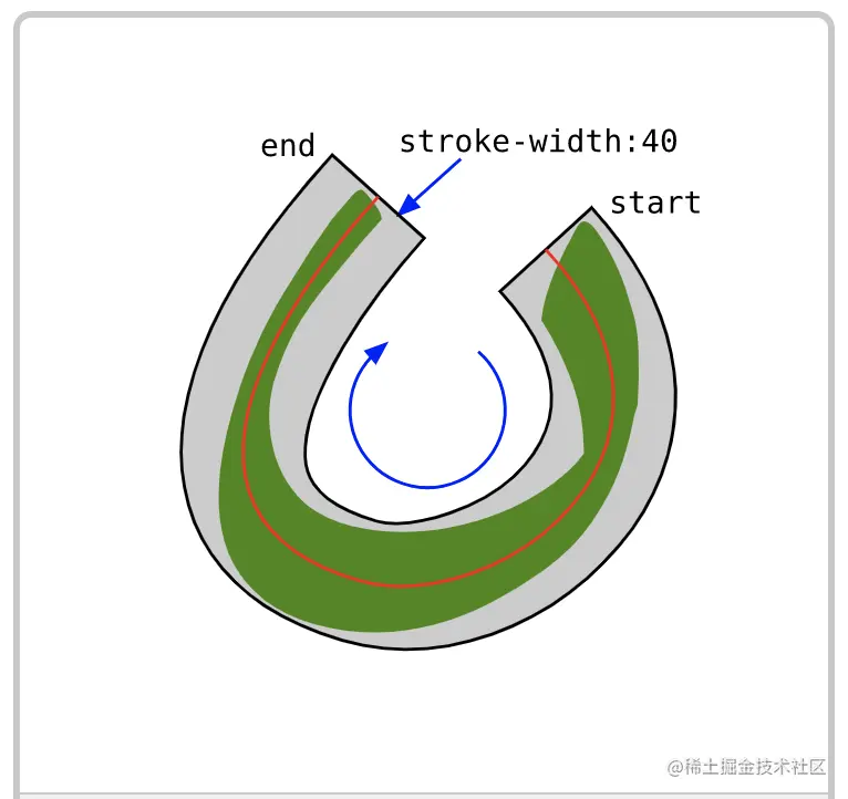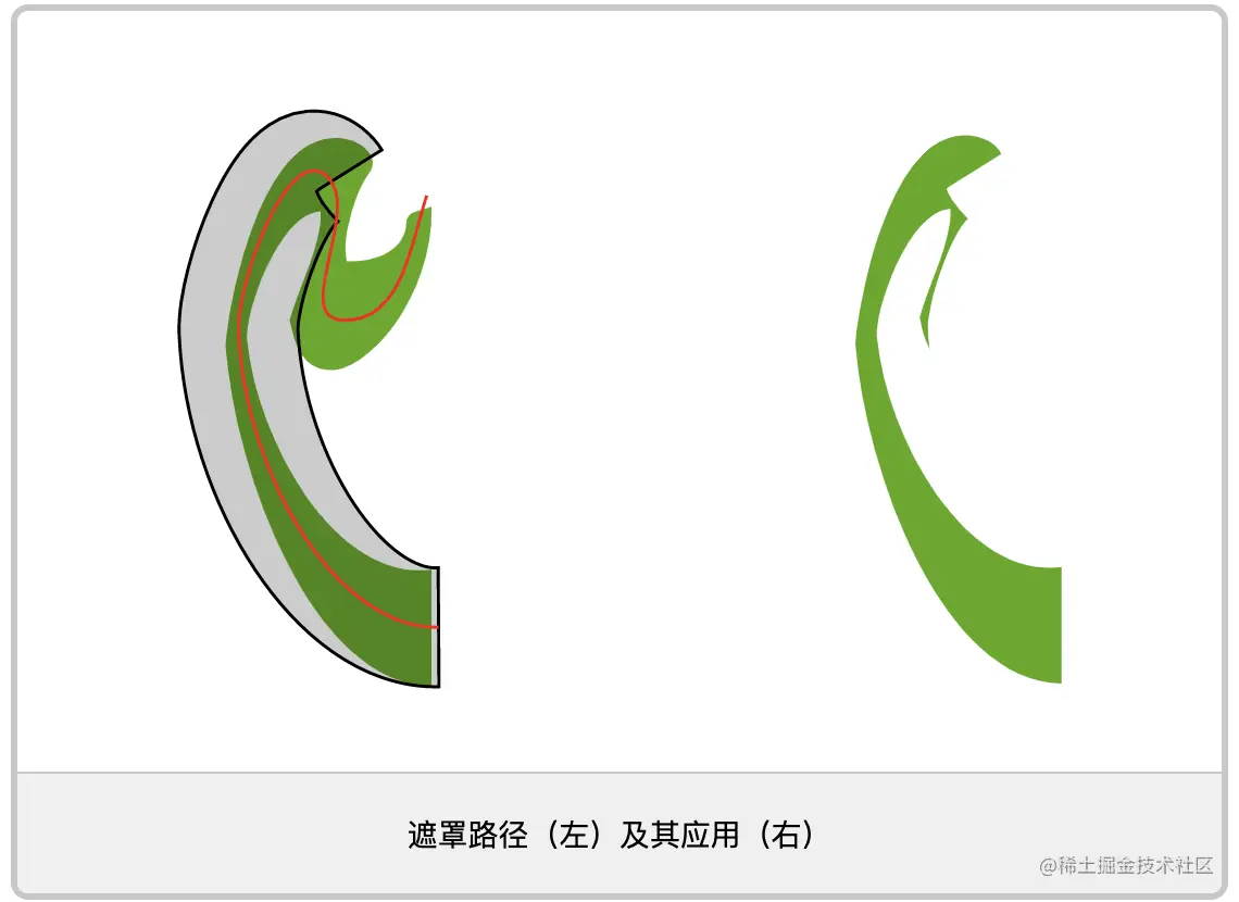 这是mask的一种情况,而不是clip-path--那是行不通的,剪辑路径总是引用路径的填充区域,但忽略stroke(具体请参考这篇文章)