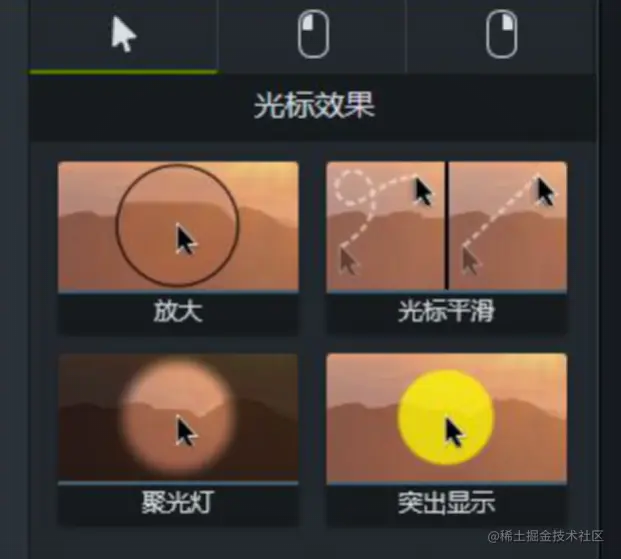 打开软件,我们就可以很容易地在软件左边的功能栏中找到“光标效果”功能。