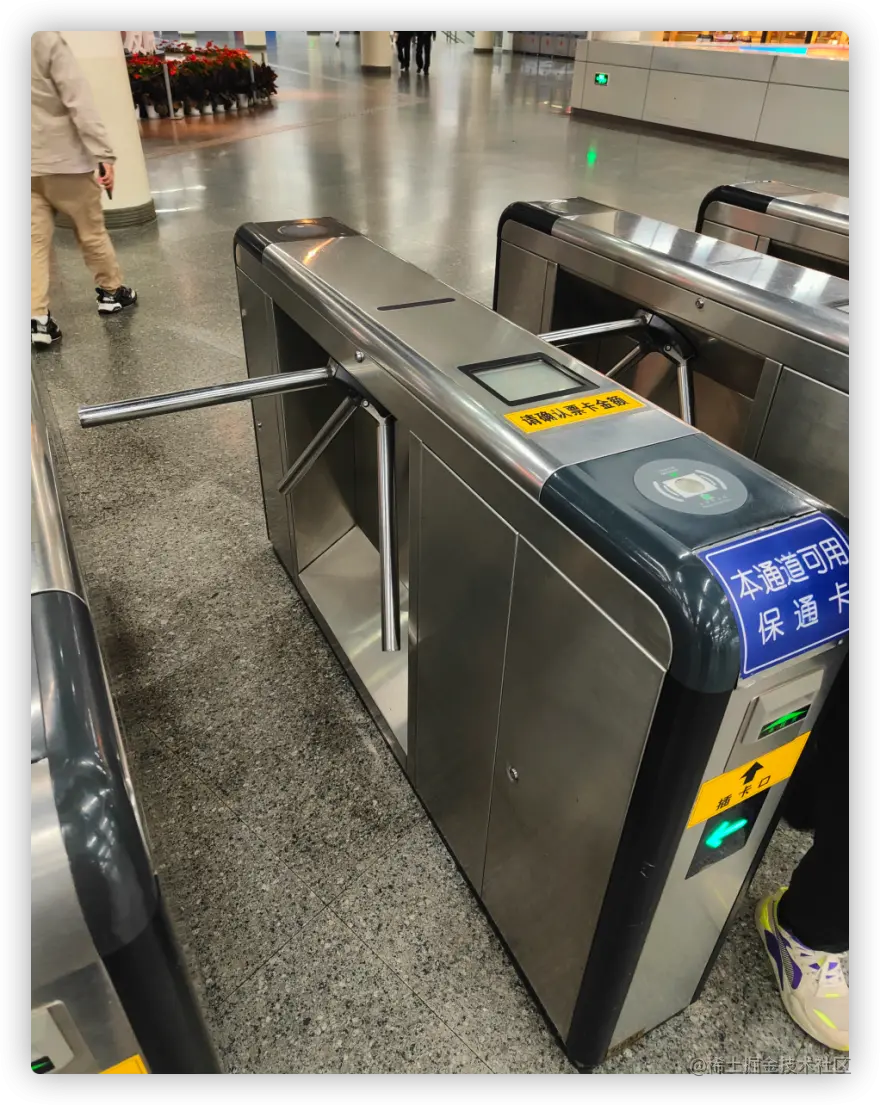 上海地铁的进出闸门是桥式弧形三锟闸设计,体验不是很好,刷完卡需要人力去推轮动棒进出