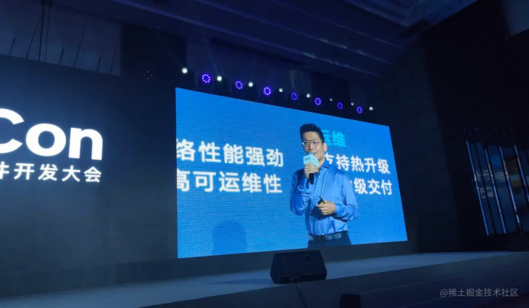 到了9:15,上午的会议也正式拉开帷幕。第一天上午的日程安排只有3个主题:《主题演讲》、《大型团队研发提效的探索与实践 解决方案专场》、《实时通信技术》。最后一个不是我的技术栈范畴,我不选择;第二个是关于研发效能,我想着下午还有专场,也就没去,所以第一天上午我一上午都呆在 《主题演讲》 里面。
